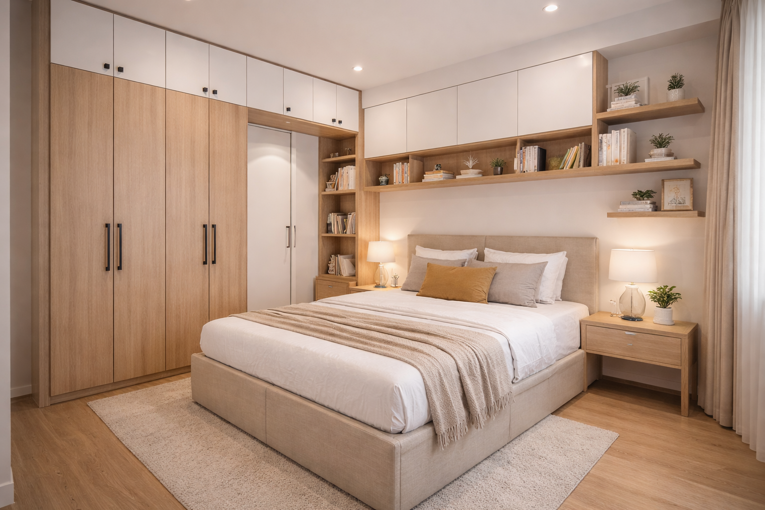 Discover smart ideas to maximize space in a small bedroom using vertical storage, light colours, mirrors, and multi-functional furniture.