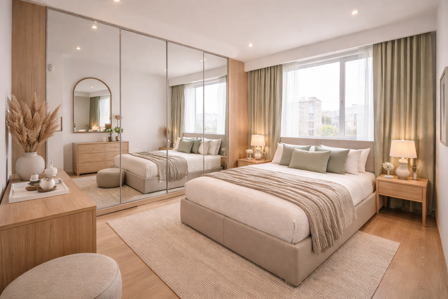 It’s an old design trick because it works: neutral colors open up your room to more light and serve as natural mood lifters. A light color palette for small bedrooms, think off-whites, soft creams, or a serene peach, helps the walls "recede," making the room feel significantly larger.