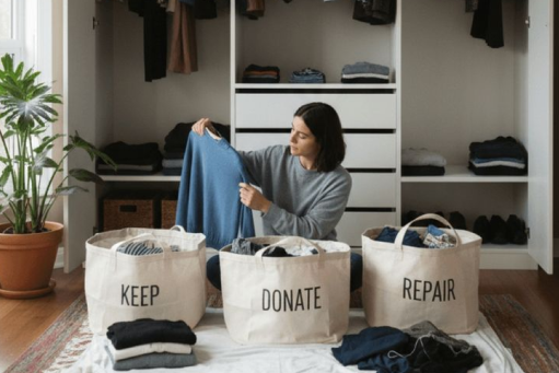 Clothes that haven’t been worn in a year, don’t fit well, or belong to an old phase of life can be donated or stored away. This step alone often reduces wardrobe volume far more than expected.